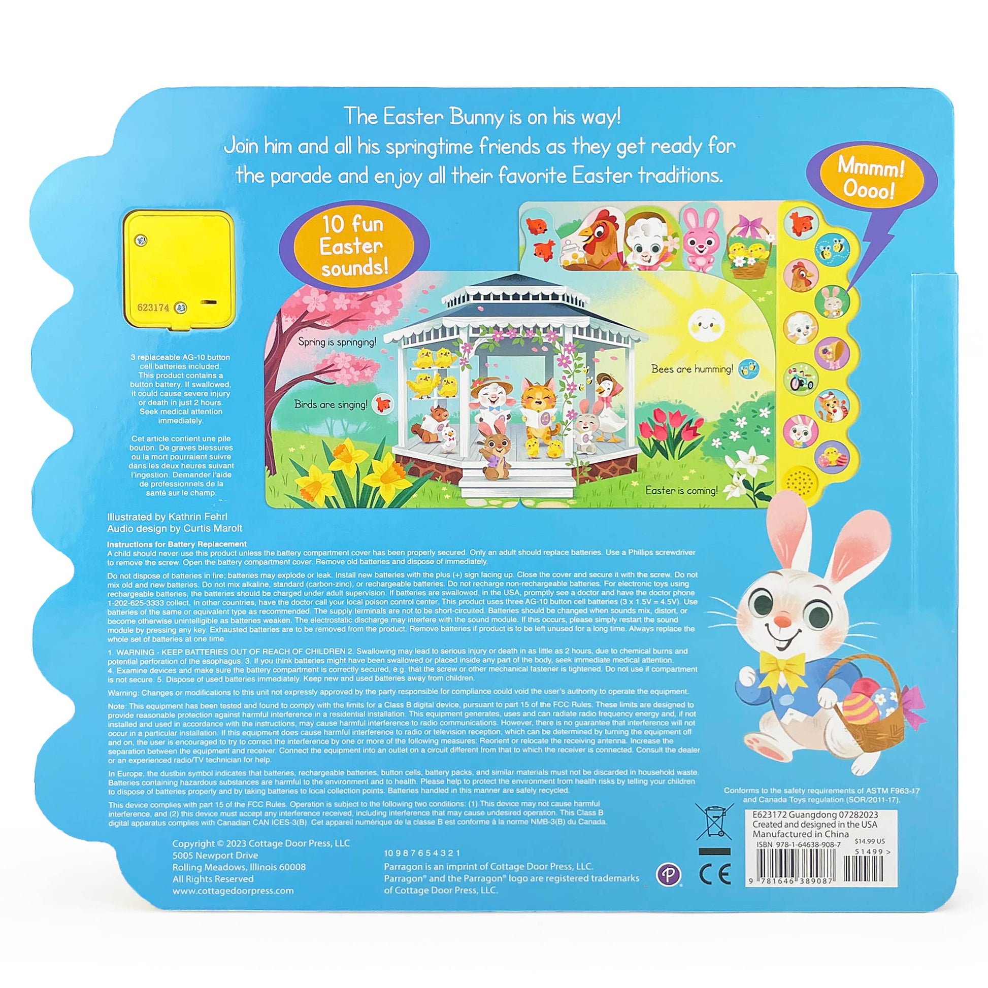 The Easter Bunny is on his way! Join him and all his springtime friends as they get ready for the parade and enjoy all their favorite Easter traditions. Follow bunnies, lambs, and chicks as they decorate eggs, get ready for the parade, and go on an egg hunt. Kids will love that this book includes 10 fun sounds to bring this rhyming story to life. Check out the entire Easter book collection from Cottage Door Press!