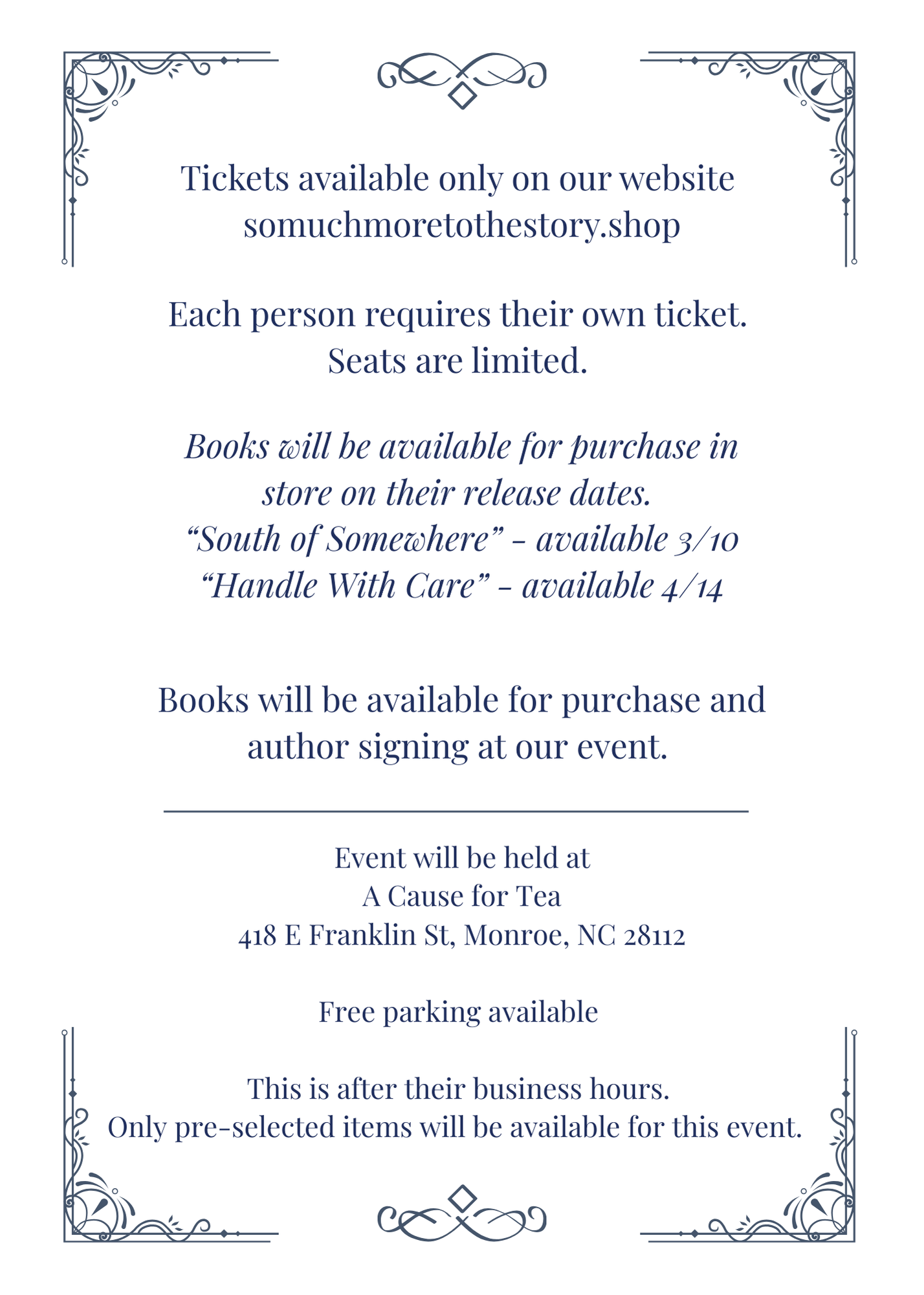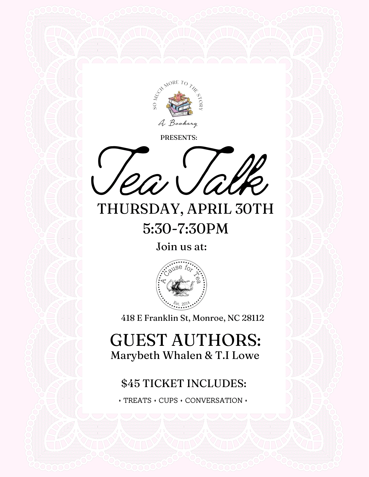 We will be having our event at A Cause for Tea, not far from our store,