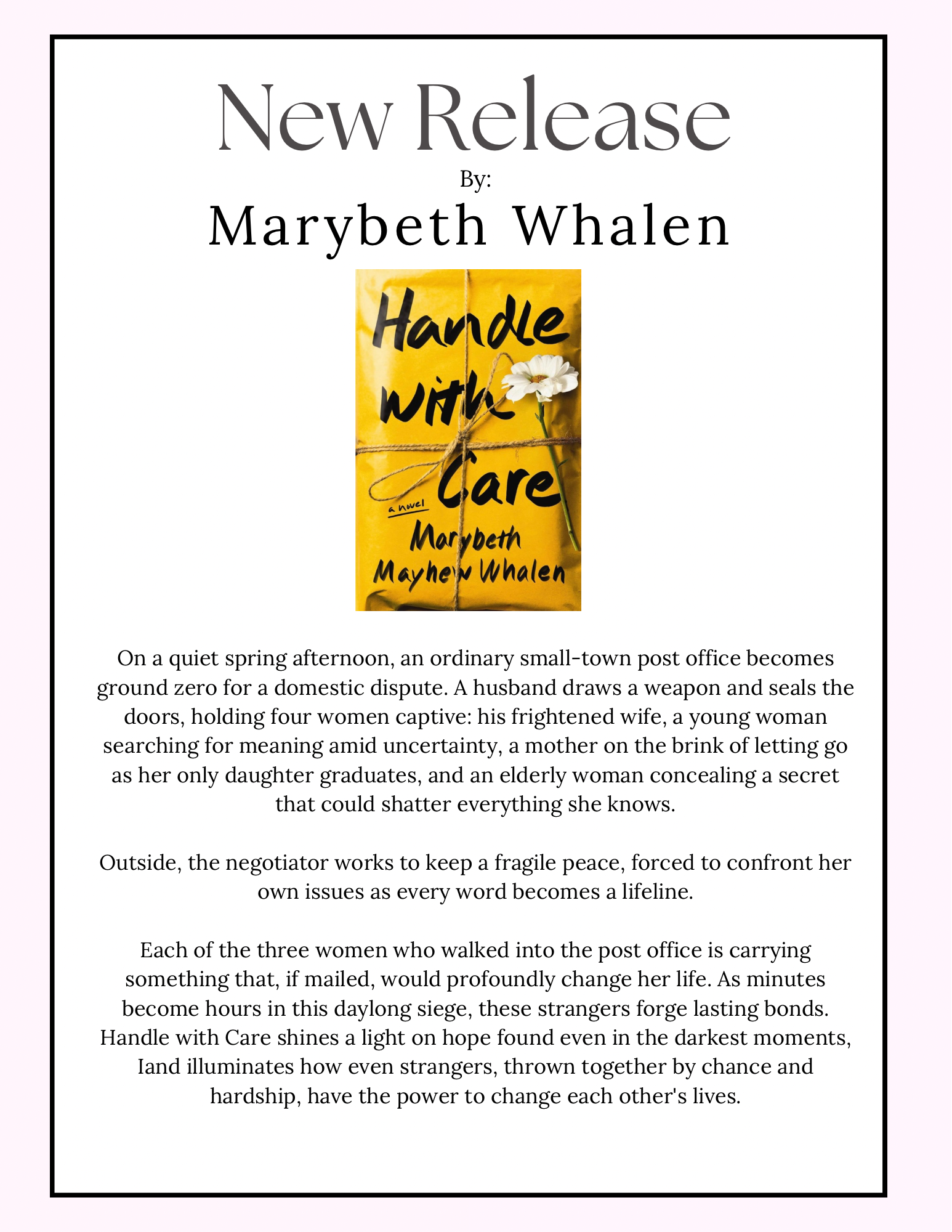 Guest author's Marybeth Mayhew Whalen and T.I. Lowe will be coming to talk about their newest releases.