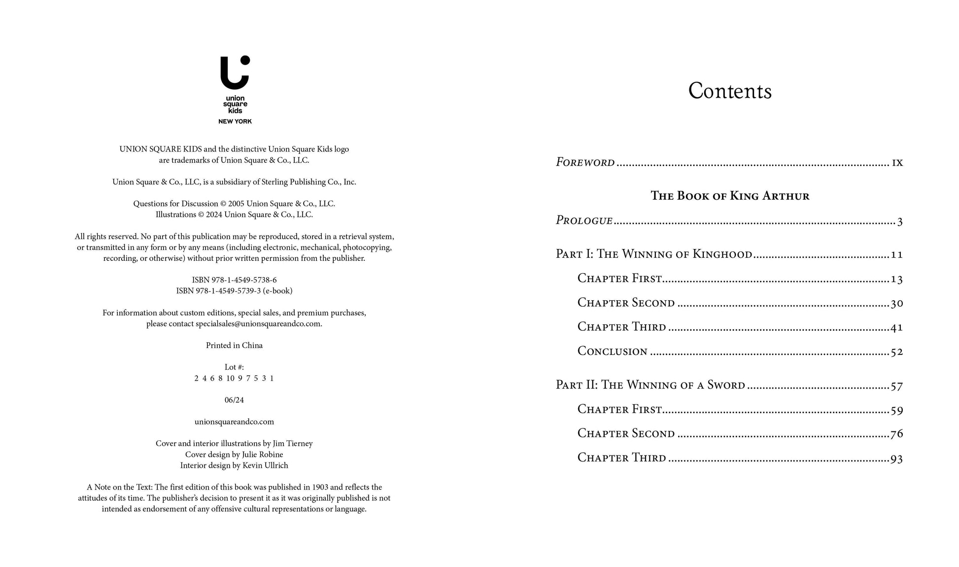 The heroic legends of King Arthur and his brave Knights of the Round Table is now available in an unabridged, illustrated cloth hardcover edition in Union Square and Co.'s Children's Signature Clothbound Classics series. Although the folklore of King Arthur and his Knights of the Round Table is centuries old, their spirited adventures continue to capture the hearts of young readers today. Camelot, Merlin, Morgana, the Holy Grail—all originating from Arthurian legend—have been widely adapted in media and modern fantasy world-building. This Children's Signature Clothbound Classics edition of The Story of King Arthur and His Knights is the only widely available edition of Howard Pyle's version, which was written specifically for children. Hardcover Book with Trade Cloth; 5 1/2 X 6 1/2 inches; 464 pages.